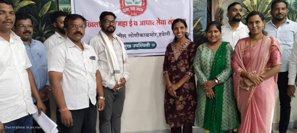 पुणे : अप्पर तहसील लोणी काळभोर हवेली तहसील कार्यालय येथील कार्यक्षेत्रात येणाऱ्या सर्व महा ई सेवा केंद्र चालक यांची दिनांक 29/10/2025 रोजी झालेल्या (पुणे जिल्हा अखिल स्तरीय महा-ई-सेवा केंद्र व आधार केंद्र संघटना ) यांची कार्यकारणी व पदाधिकारी यांची बैठक आयोजित करण्यात आली होती त्यावेळी नूतन कार्यकारिणीची निवड करण्यात आली..